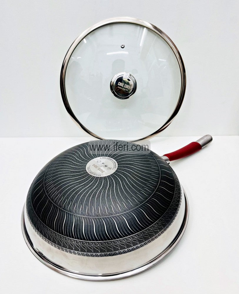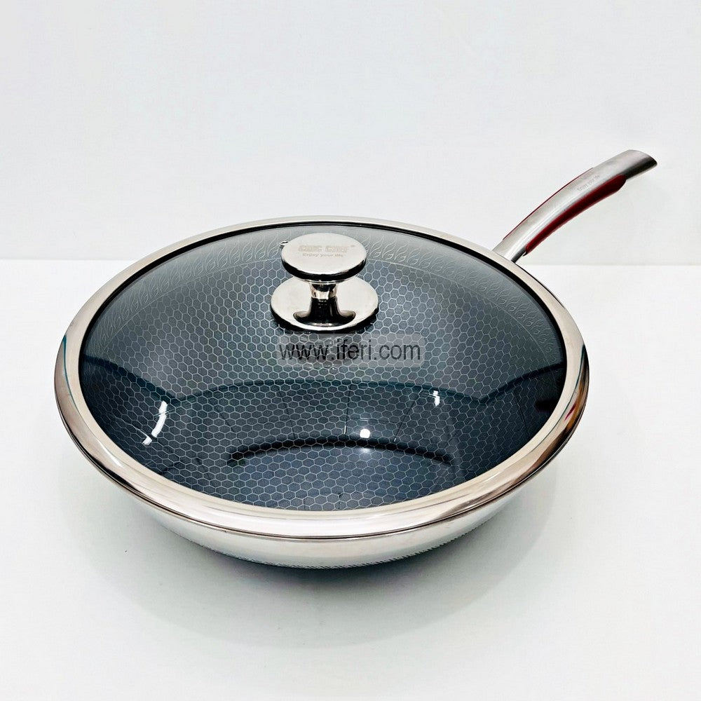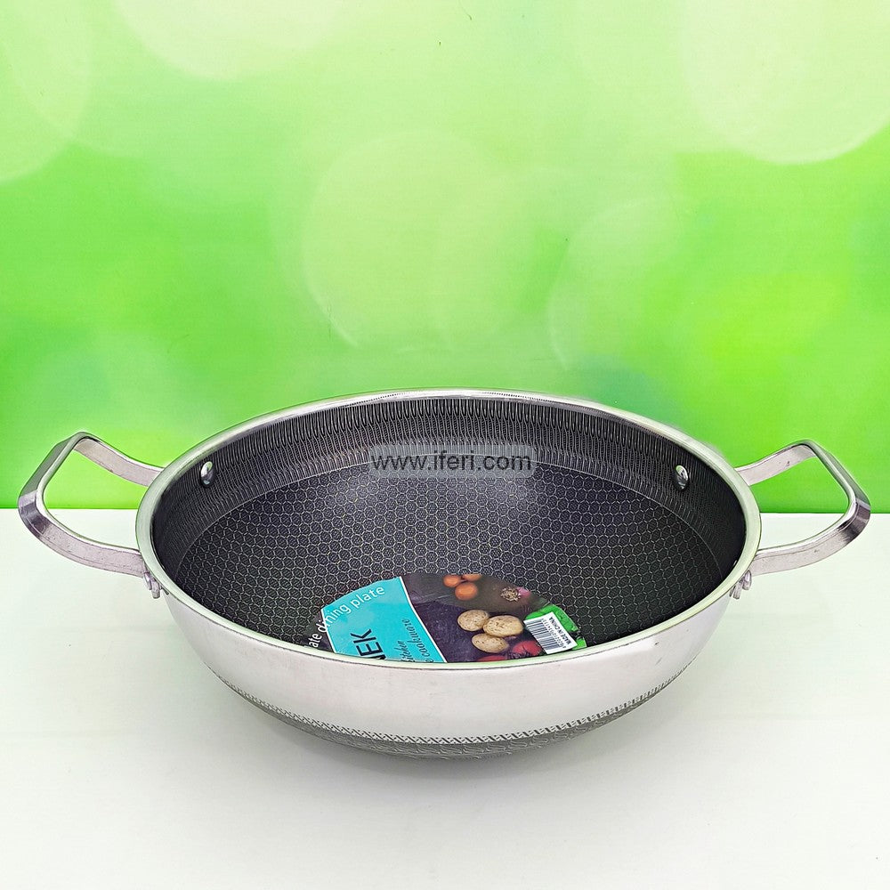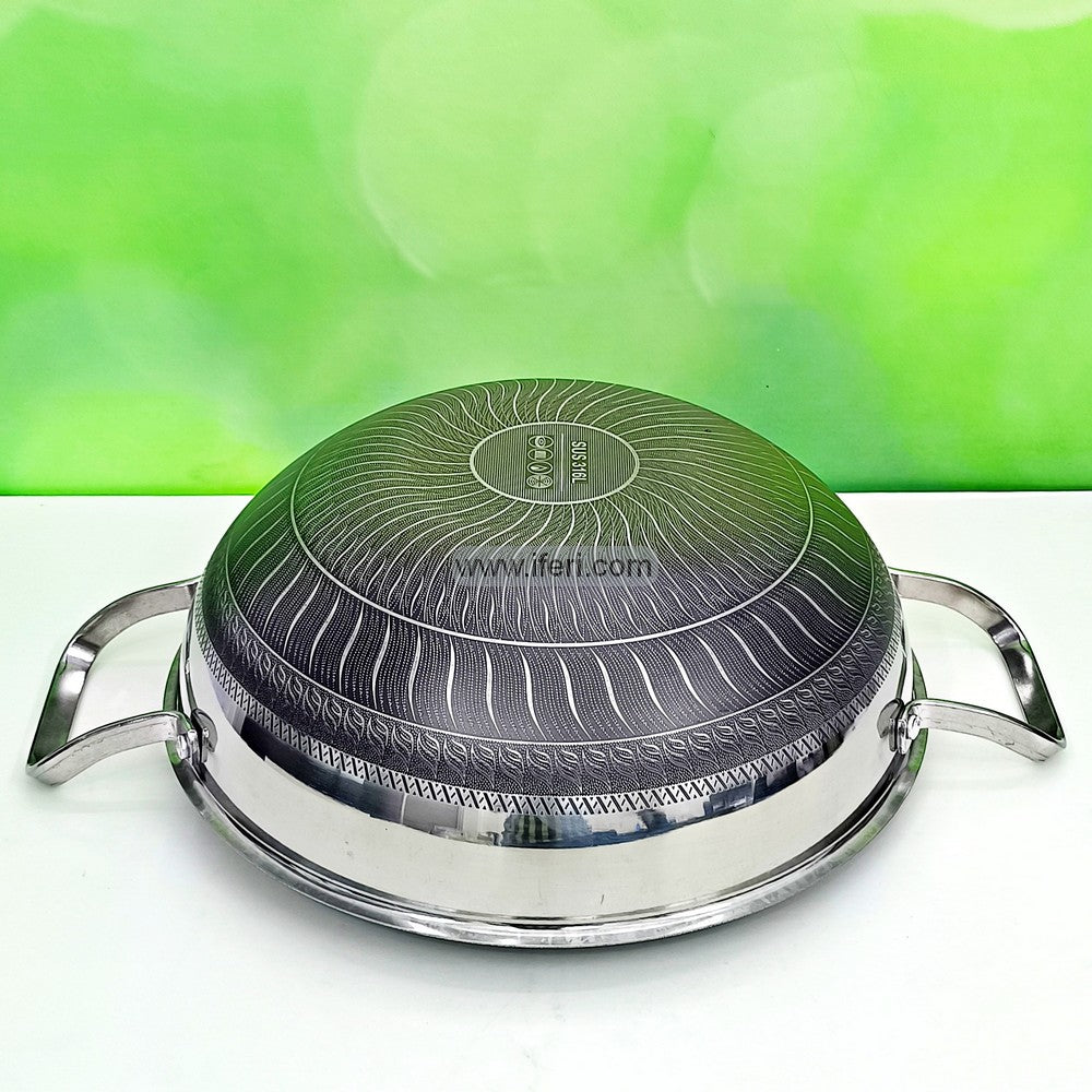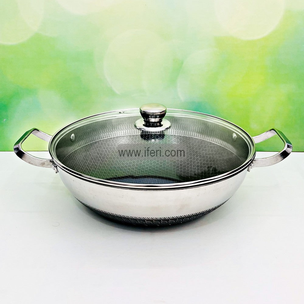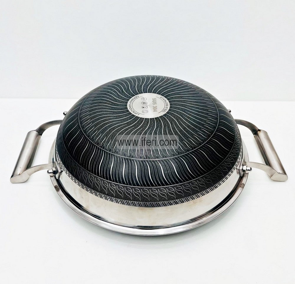 34cm Uncoated Honeycomb Design Stainless Steel Non-Stick Cookware / Karai with Lid TG10725