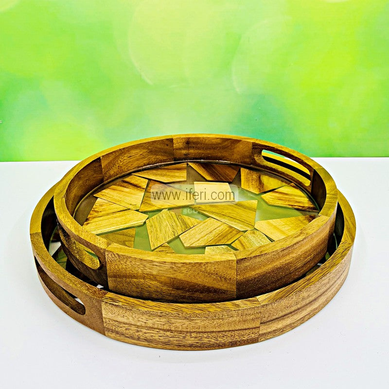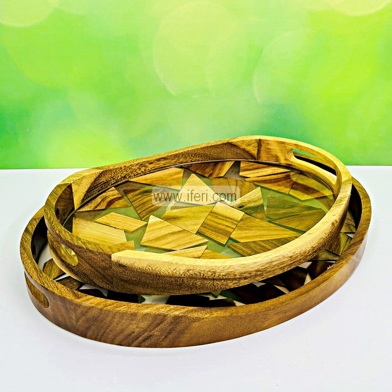 2 Pcs Exclusive Wood & Resin Serving Tray Set RY3409