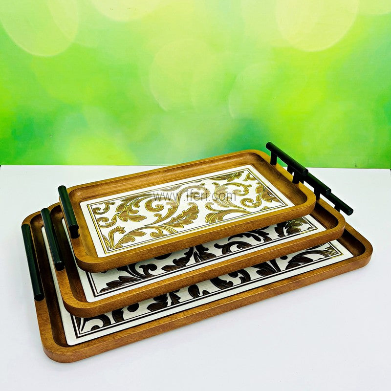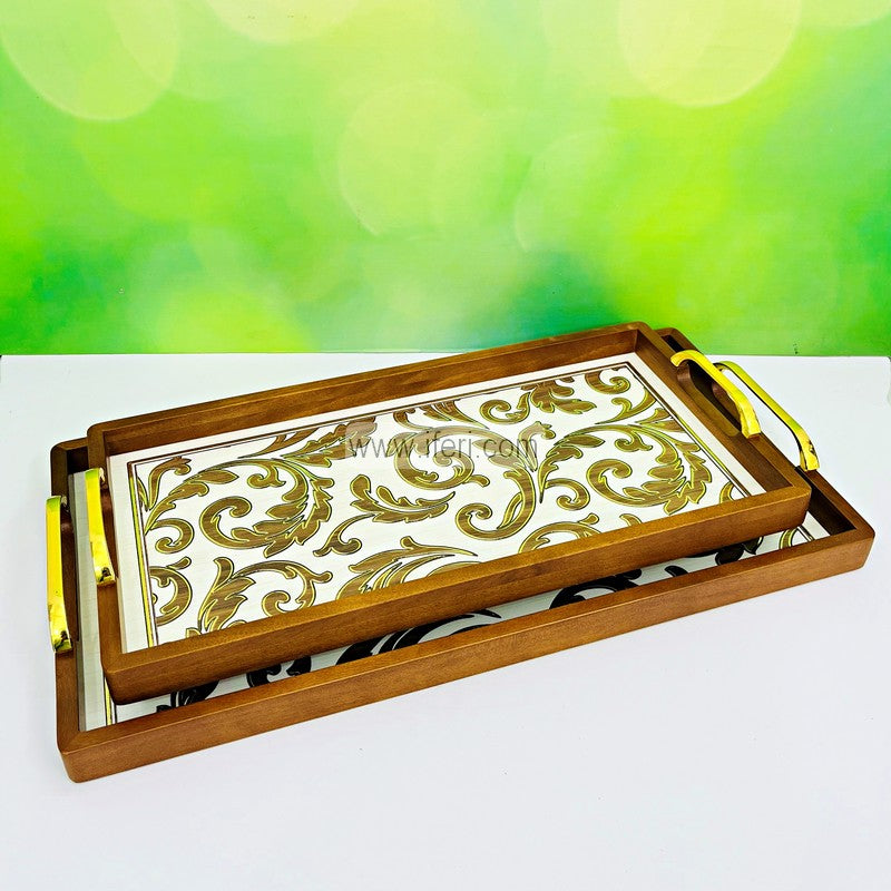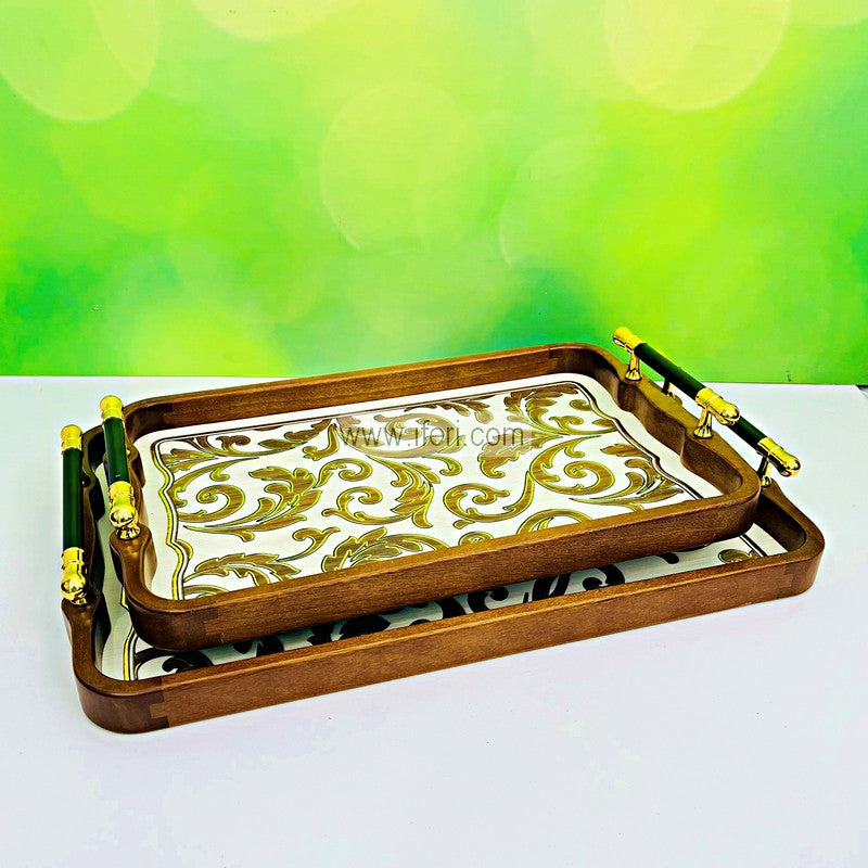 2 Pcs Exclusive Wood & Resin Serving Tray Set RY3408