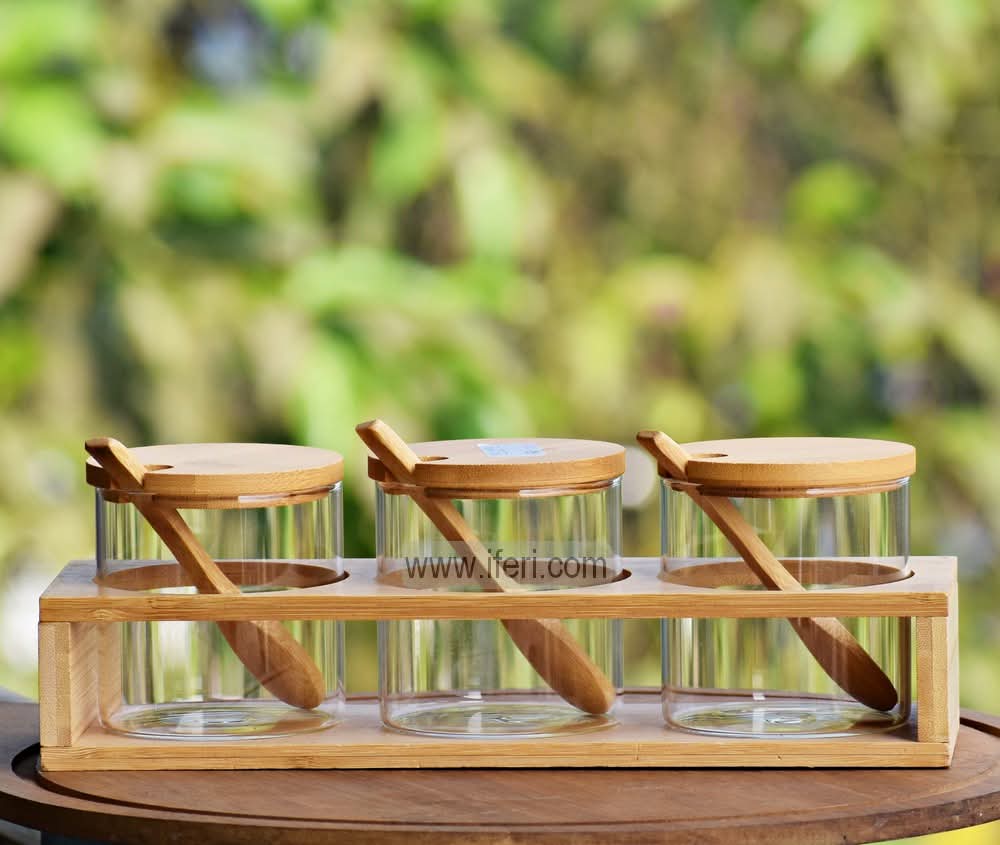 3 Pcs Glass Spice Jar Set with Spoon & Stand TB1594
