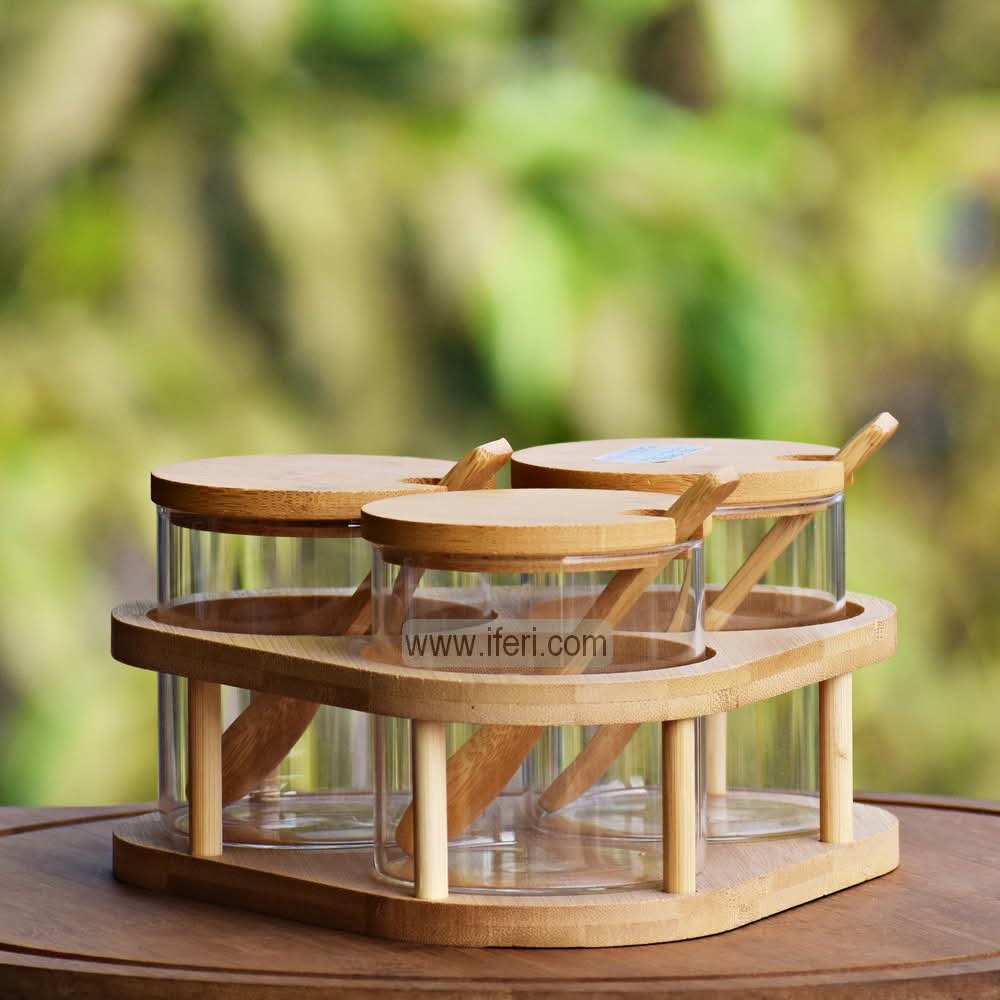 4 Pcs Glass Spice Jar, Cookie Jar Set with Revolving Stand RH0359 (āϏā§āϞ)