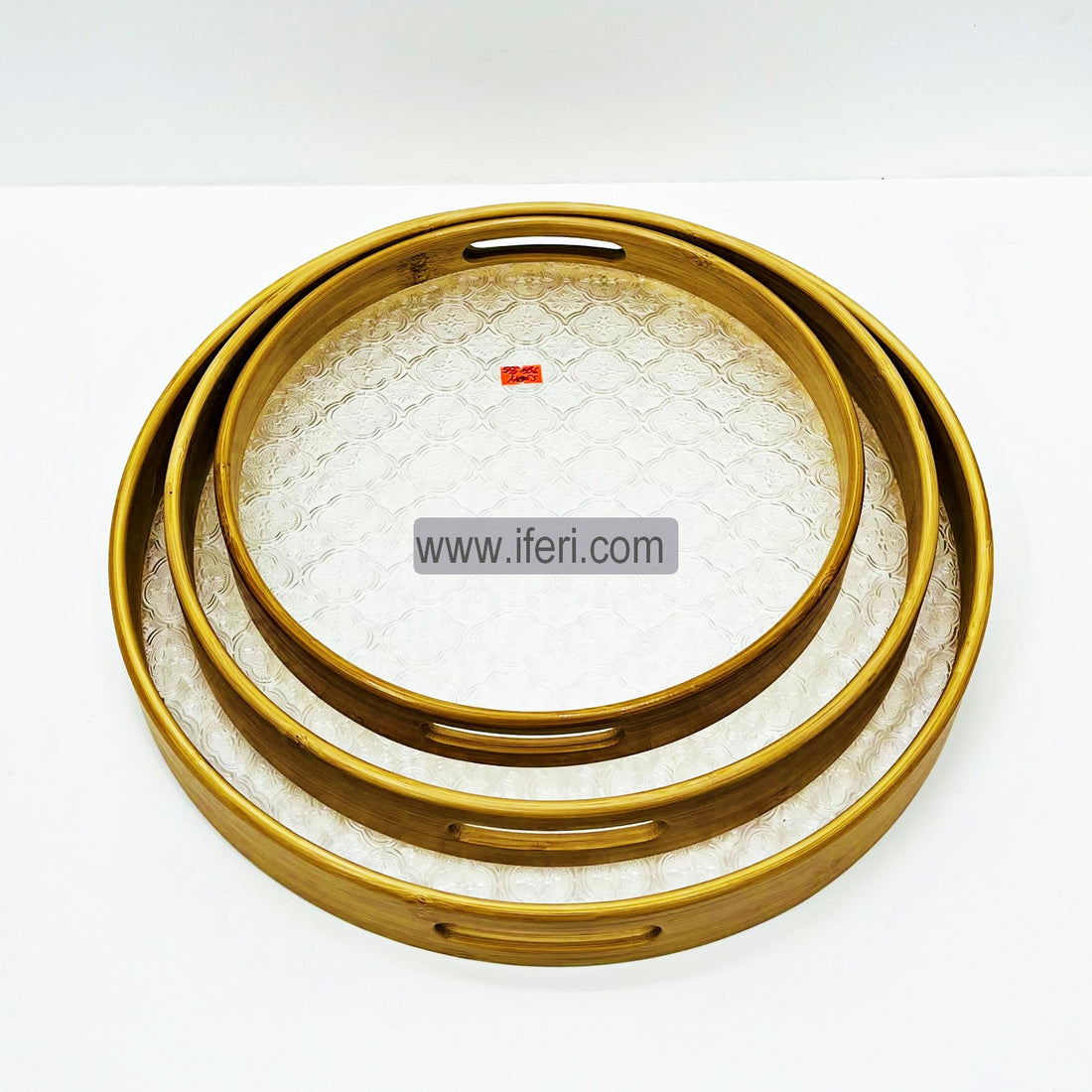 3 Pcs Exclusive Round Bamboo Serving Tray TG1772
