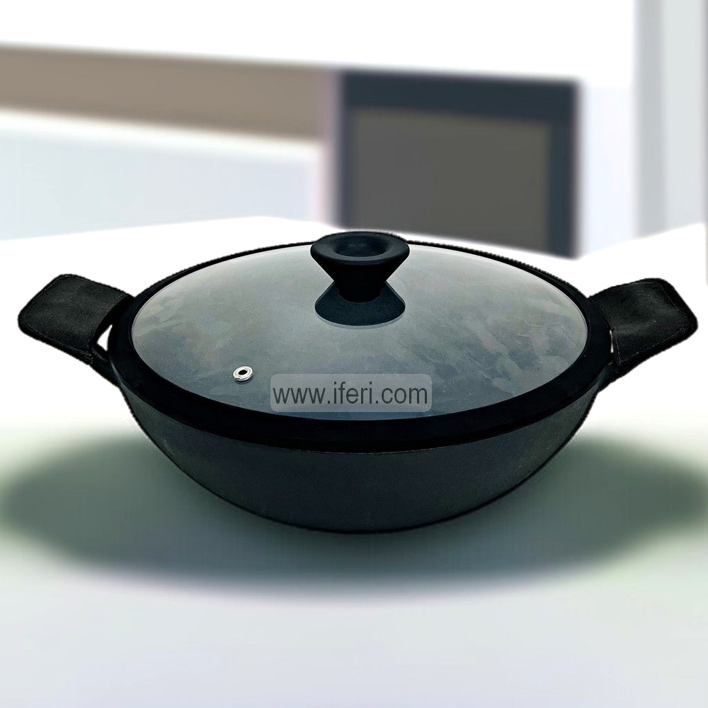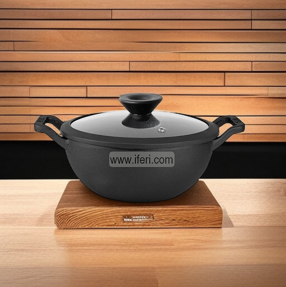 2 Liter Futura Cast Iron Kadhai with Glass Lid ALM6839 Size: 24 cm Capacity: 2...