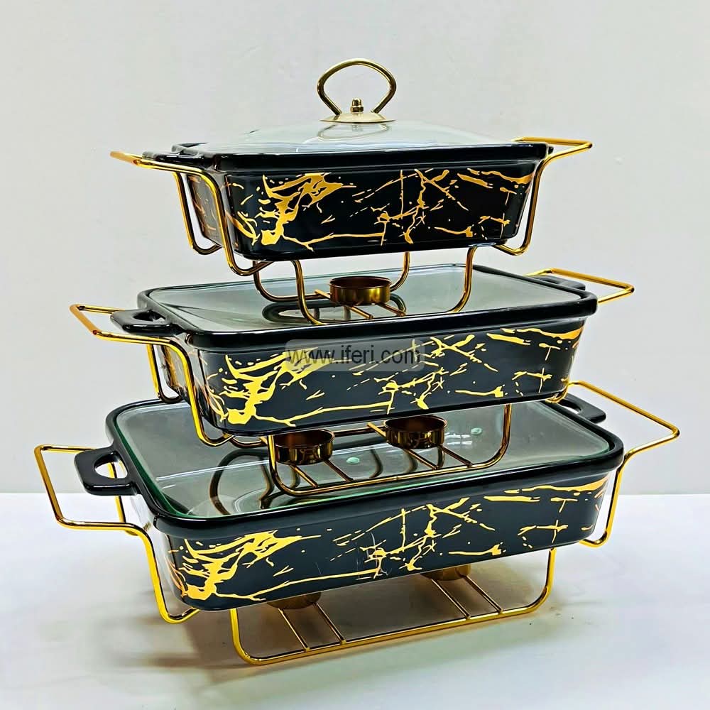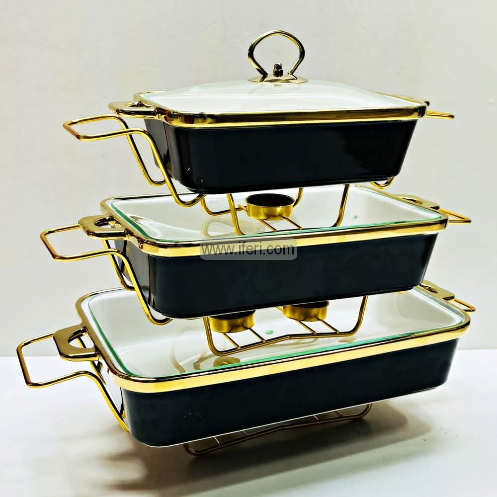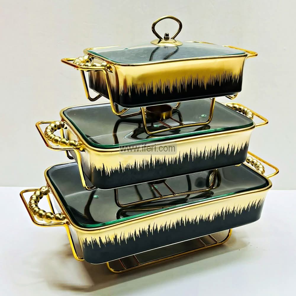 3 Pcs Exclusive Ceramic Casserole Dish Set with Food Warmer Metal Stand HR2027