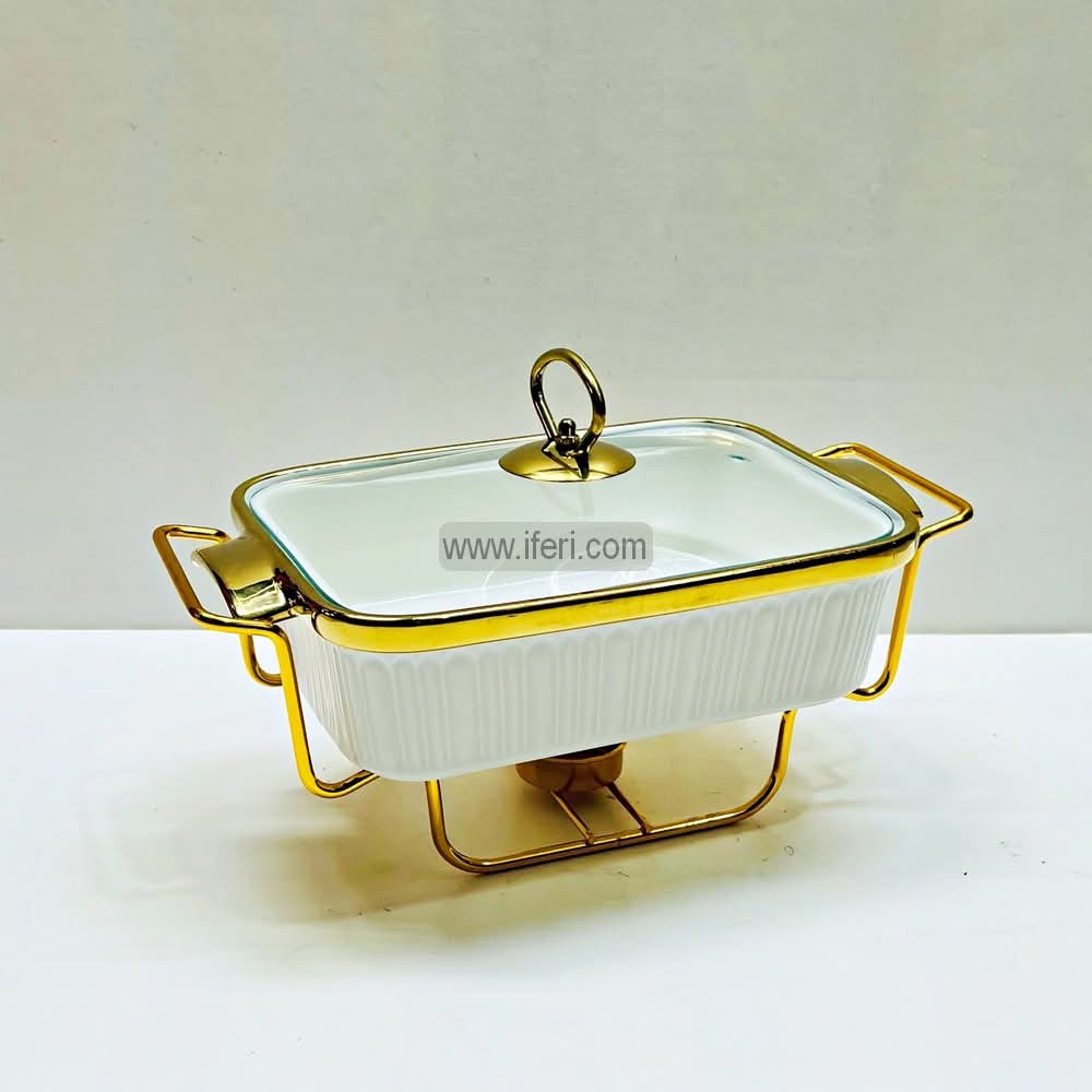 10 Inch Rectangular Shaped Exclusive Ceramic Casserole Dish with Food Warmer Metal Stand HR2030
