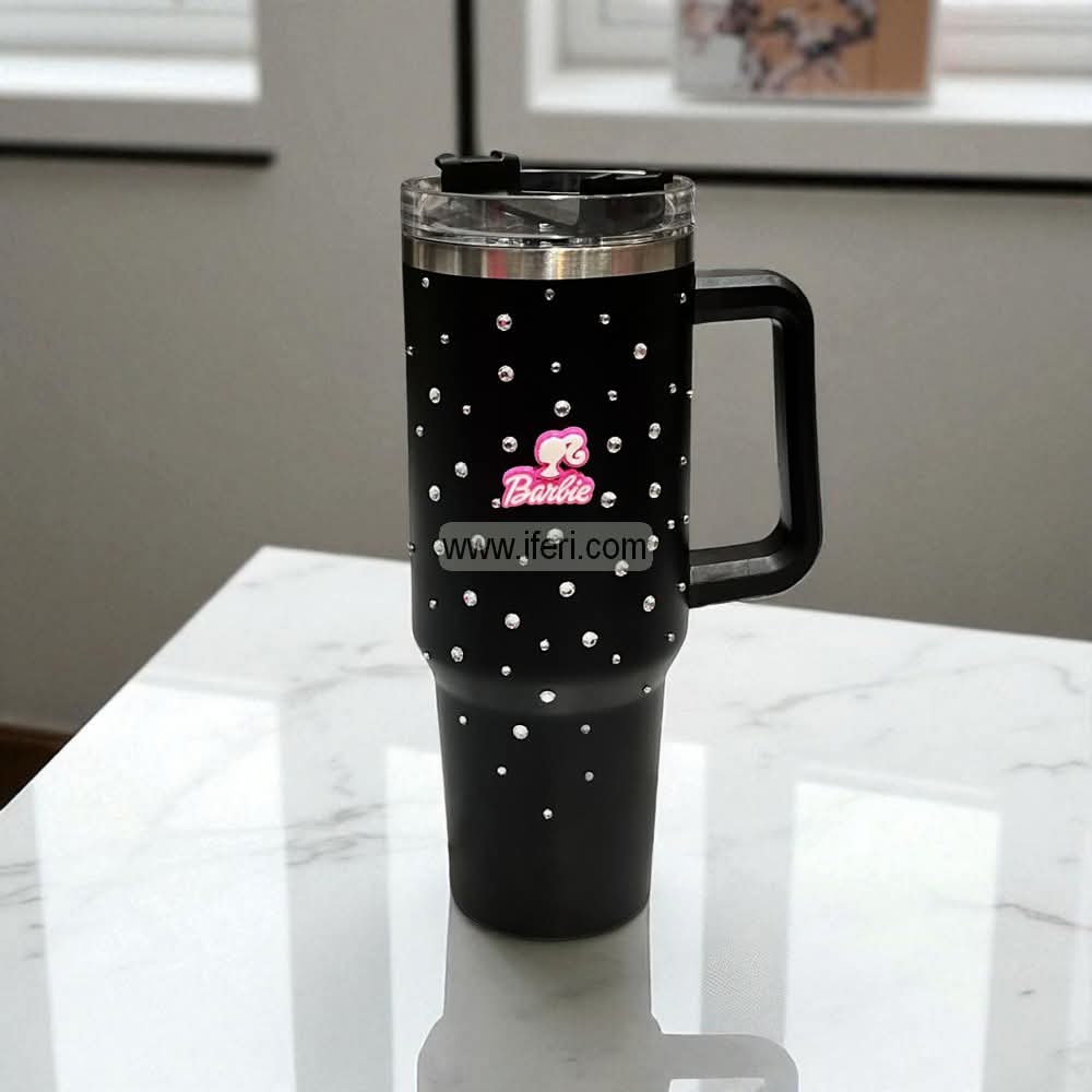 9.5 Inch Stone Decorated Ladies Coffee Cup, Vacuum Cup, Tumbler with Handle GA8333