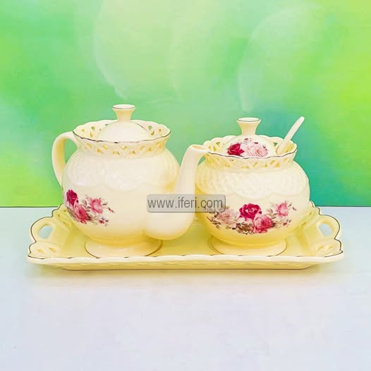 2 Pcs Exclusive Ceramic Tea Pot & Sugar Pot with Serving Tray RY3161