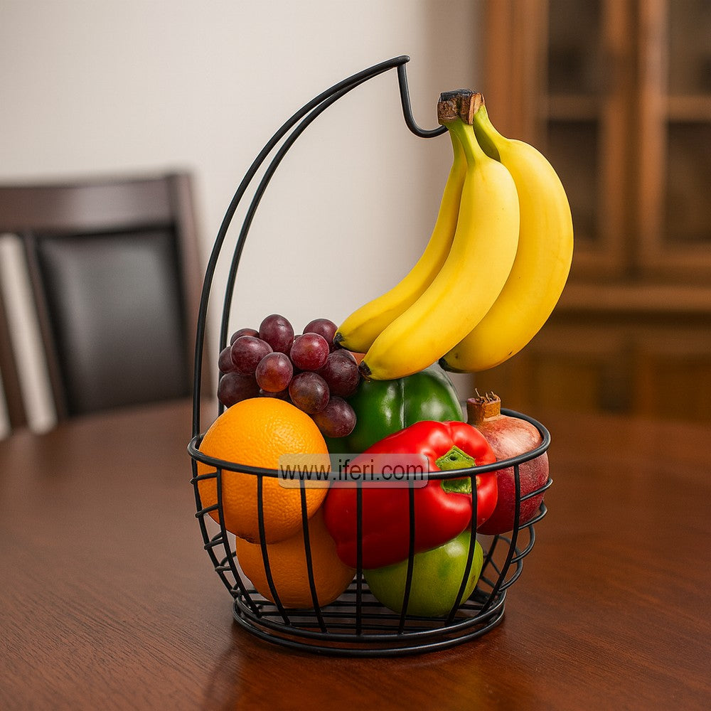 9.6 Inch Metal Fruit Basket, Multifunctional Storage Basket with Banana Hanger ALP2215