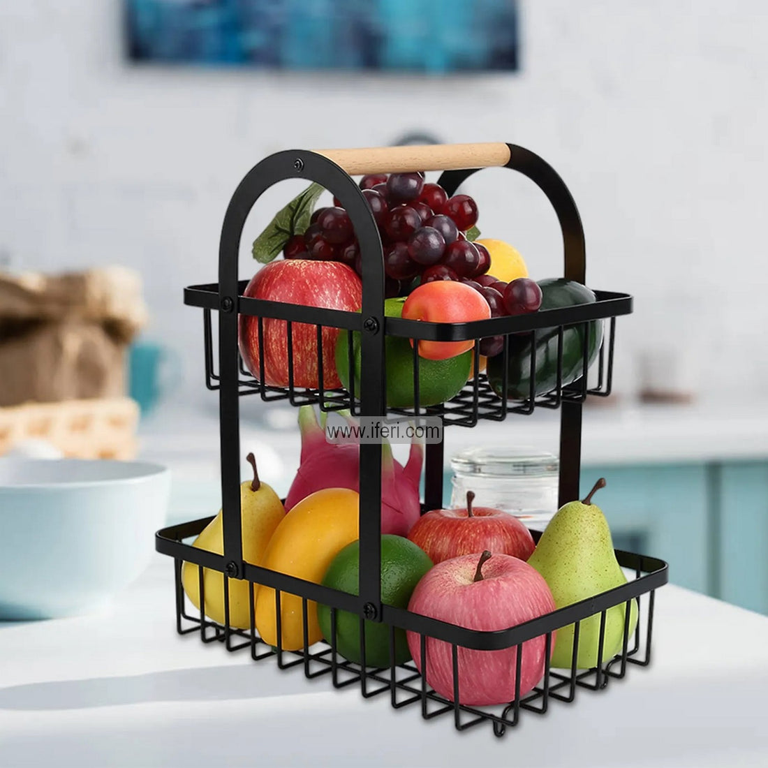 2 Tier Metal Fruit Basket, Multifunctional Storage Basket ALP1516