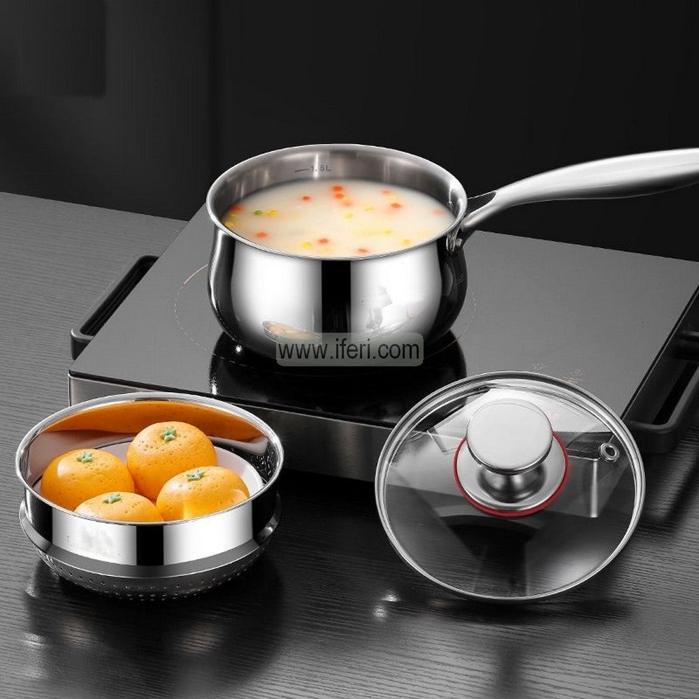 16cm Mork & Land Stainless Steel Belly Shape Milk Pan with Steamer ALM6955