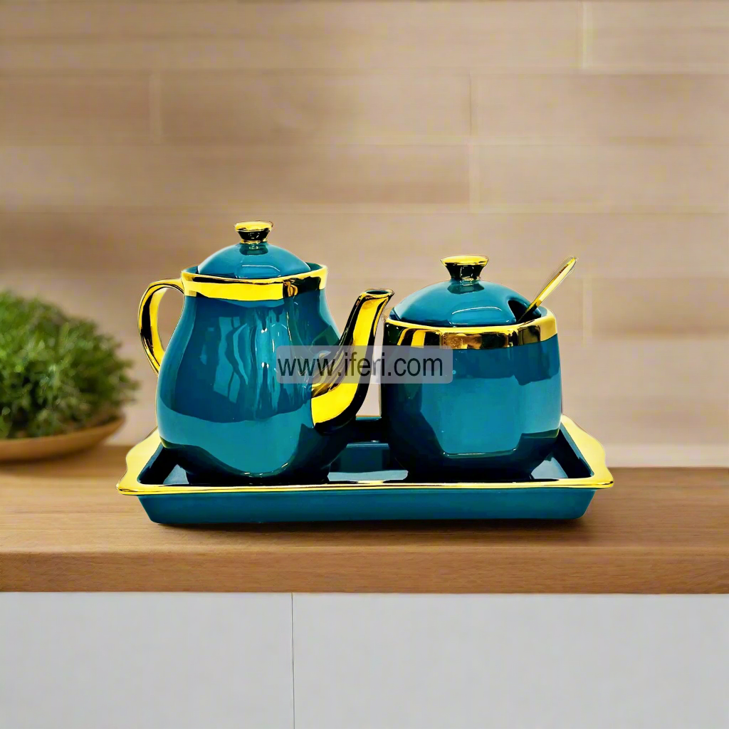 3 pcs Tea, Coffee, Sugar Pot With Ceramic Tray & Spoon Available in Bangladesh Details:Â Size:Tray:...