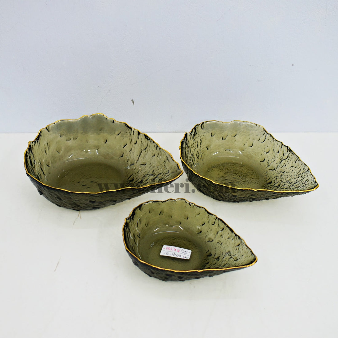 3 Pcs Golden Rim Glass Serving Bowl Set Available In Bangladesh. Large - 9" x 7"...