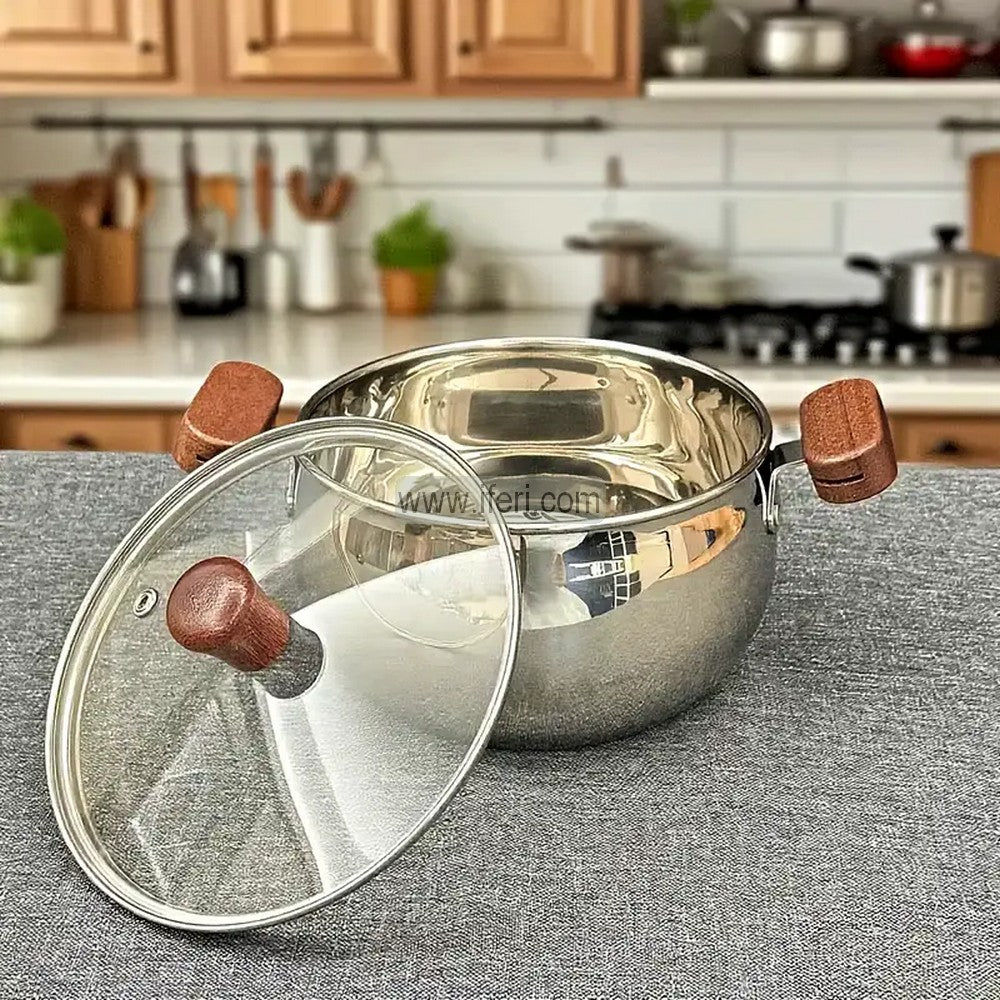 16cm Stainless Steel Belly Shape Small Stock Pot, Cookware, Handi with Glass Lid ALM695