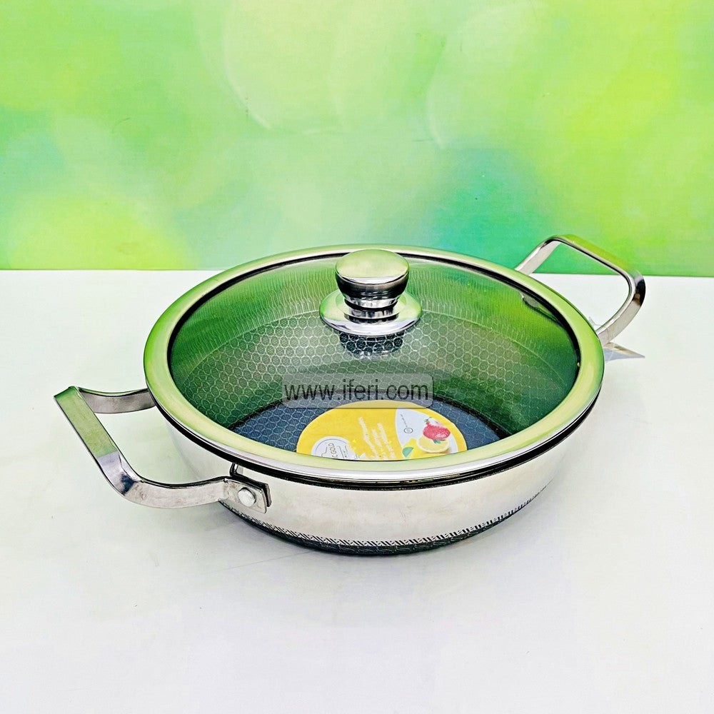 26cm Magic Gold Uncoated Honeycomb Design Stainless Steel Non-Stick Cookware / Karai with Lid TG1704...