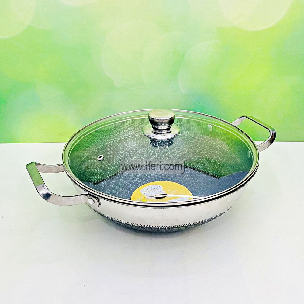 34cm Magic Gold Uncoated Honeycomb Design Stainless Steel Non-Stick Cookware / Karai with Lid TG1704