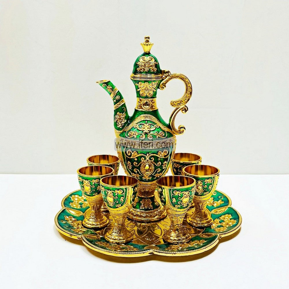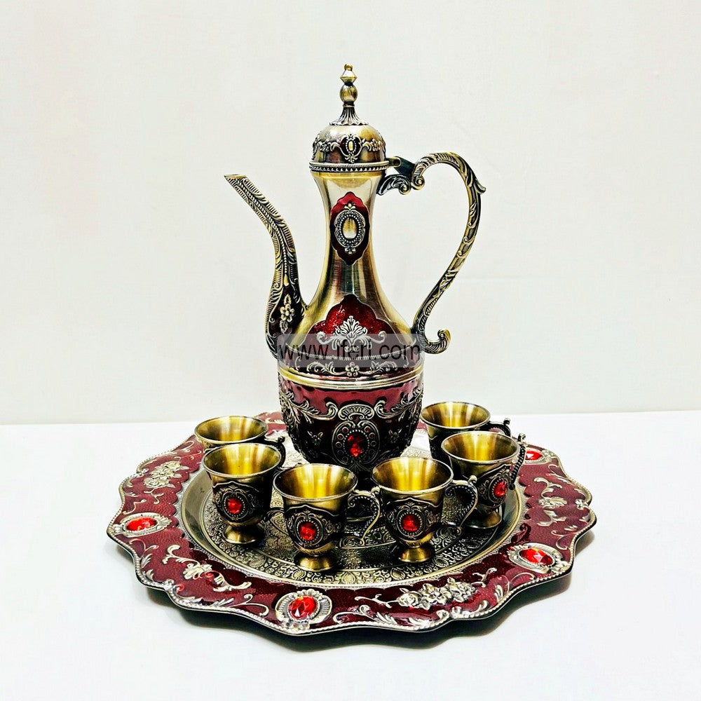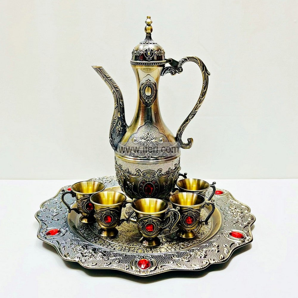 8 Pcs Metal Decorative Surai Set HR1927 Size:Tray - 9.5"Jug - 8.5" x 5.5"Glass -...