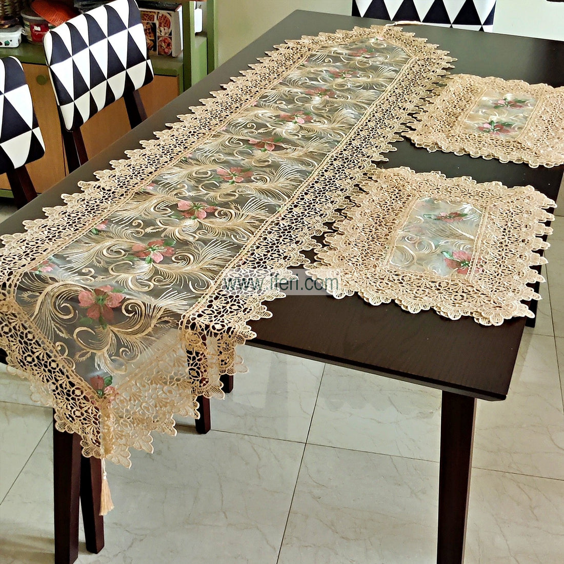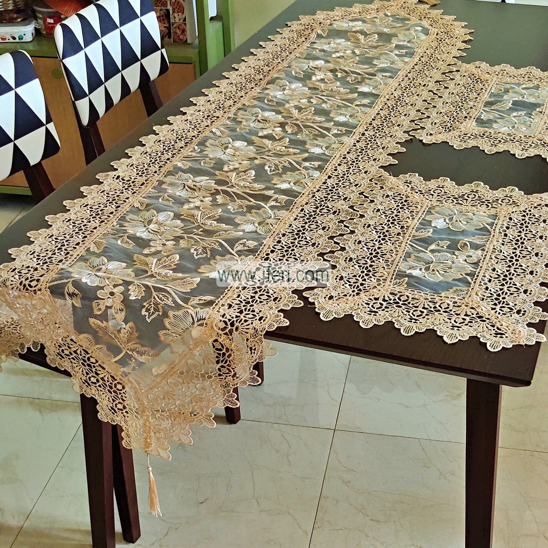 7 Pcs Luxury Embroidered Lace Runner & Placemat RJ15003