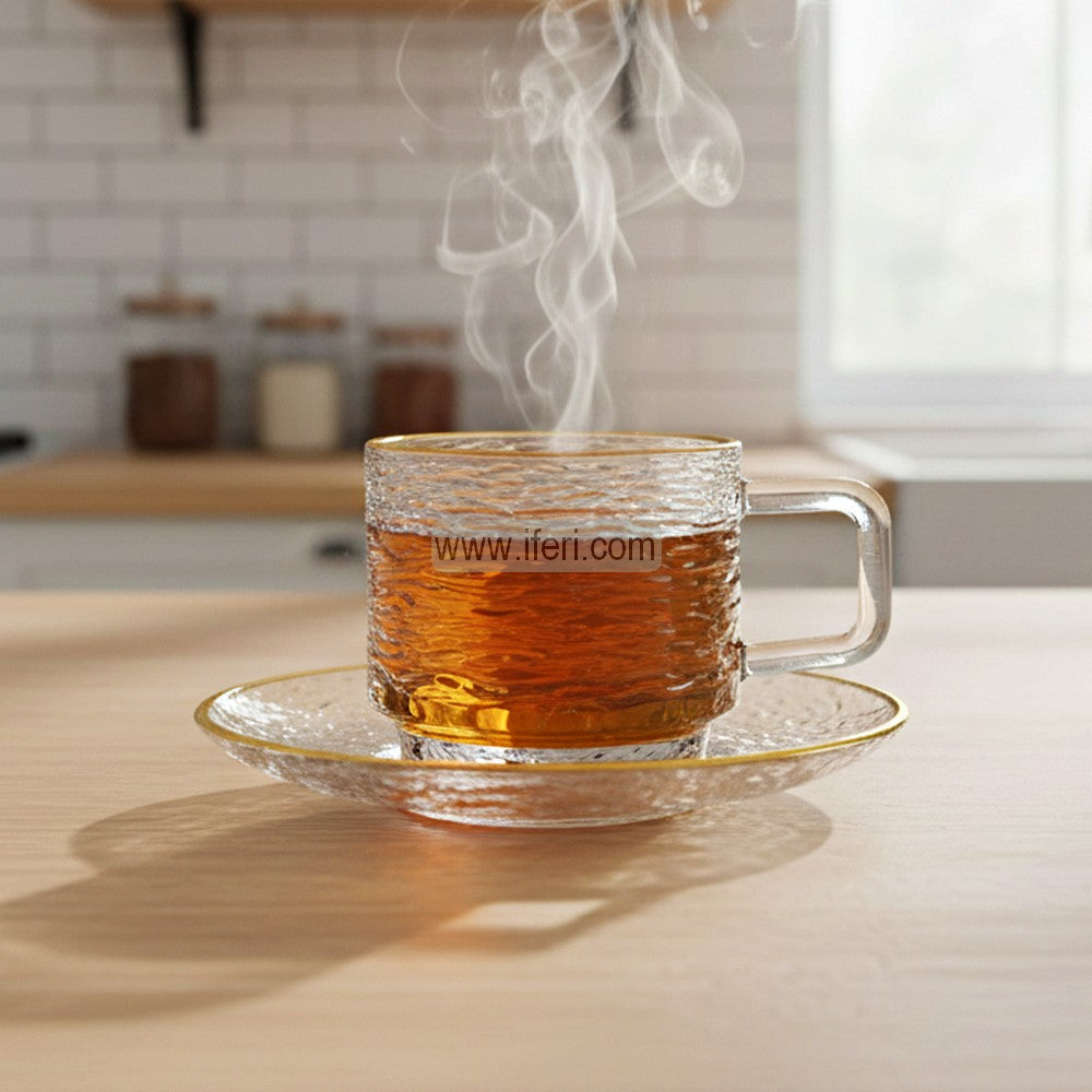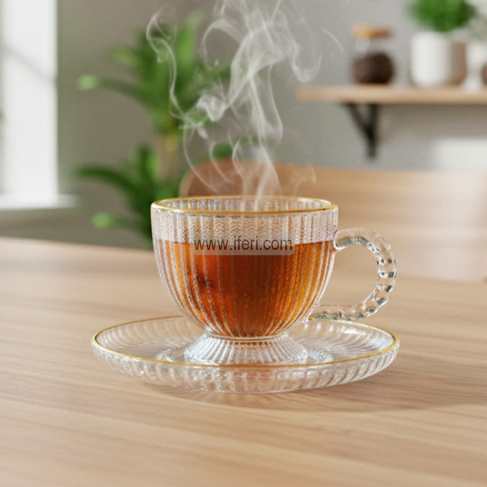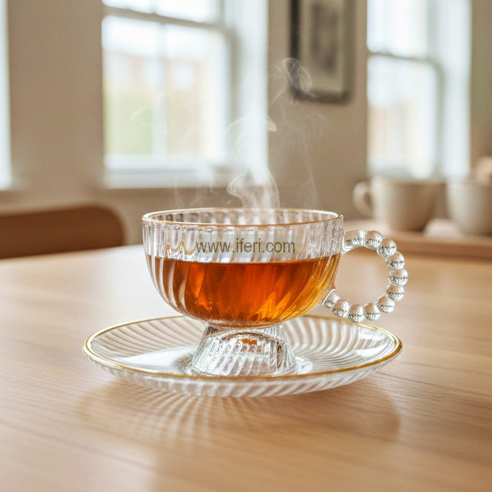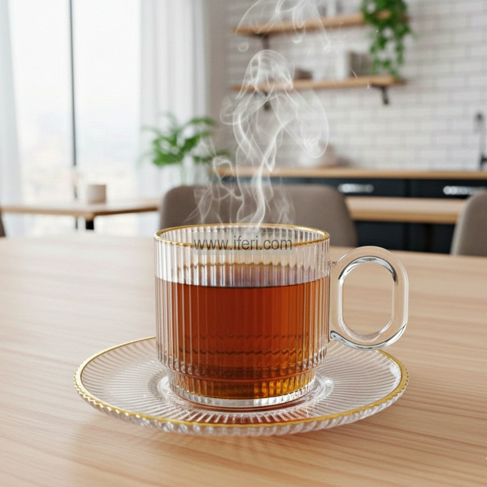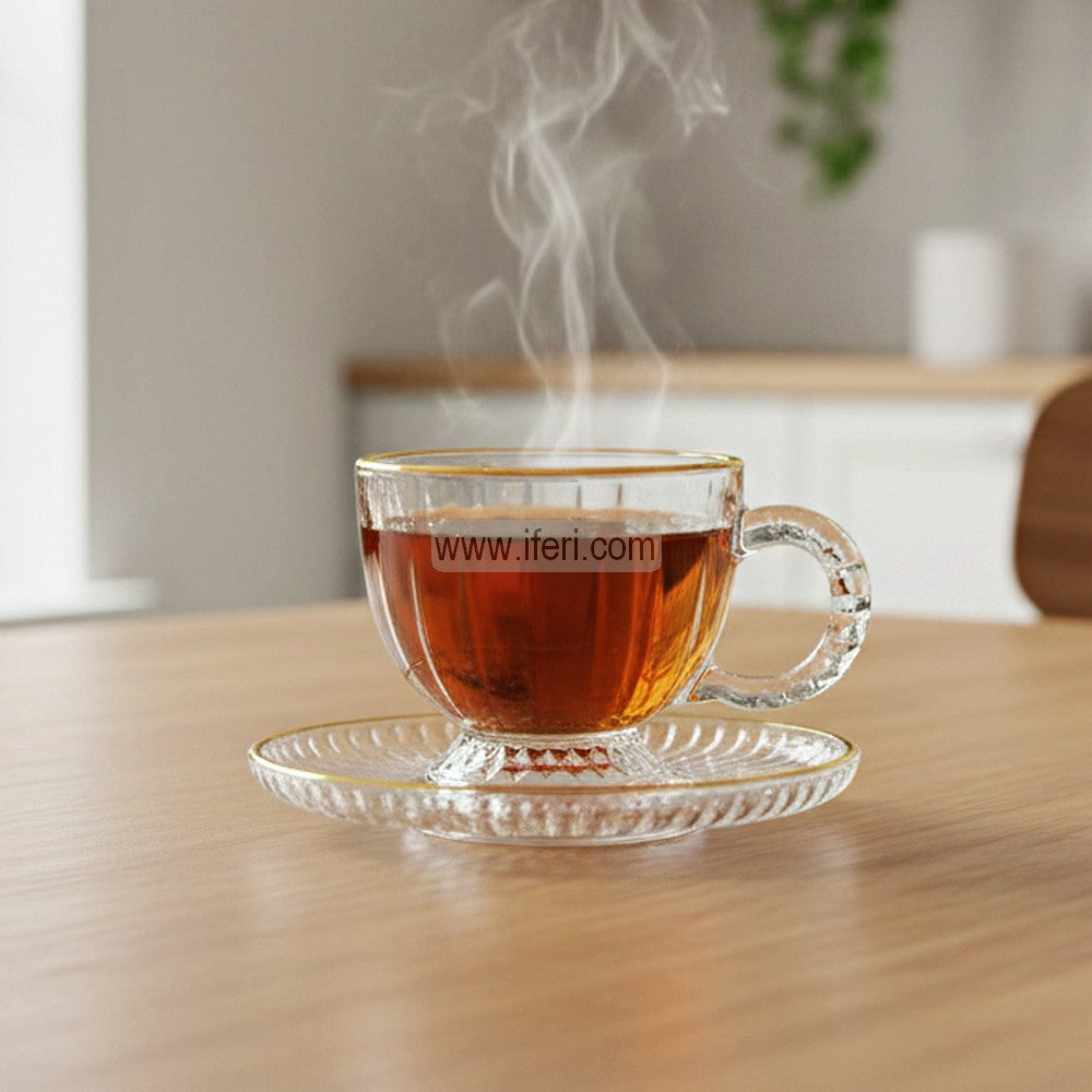 2 Pcs Glass Tea Cup & Saucer Set BDK005
