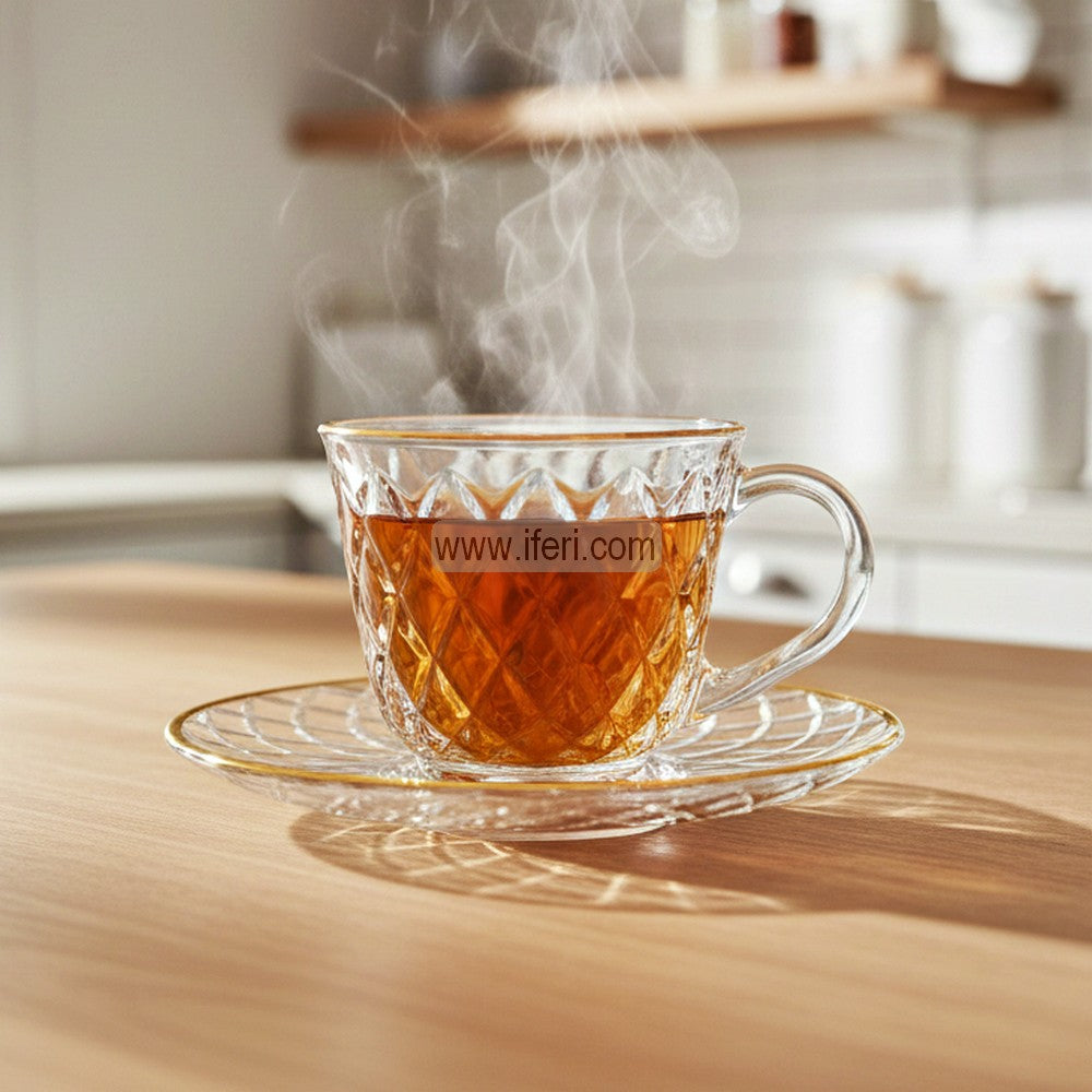 12 Pcs Golden Rim Glass Tea Cup & Saucer Set SMN0125 Size:Cup - 2.5" x...