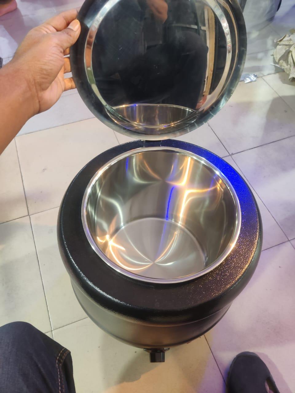 - The soup kettle made with 201 stainless liner + Black Powder Coated Collar. Easy to clean, you do not worry about the breakage problem.