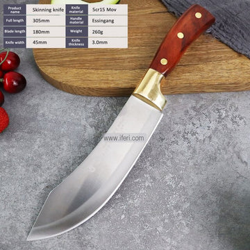The blade of a skinning knife is usually made of high-quality stainless steel or carbon steel. It has a curved shape that aids in separating the skin from the underlying flesh.