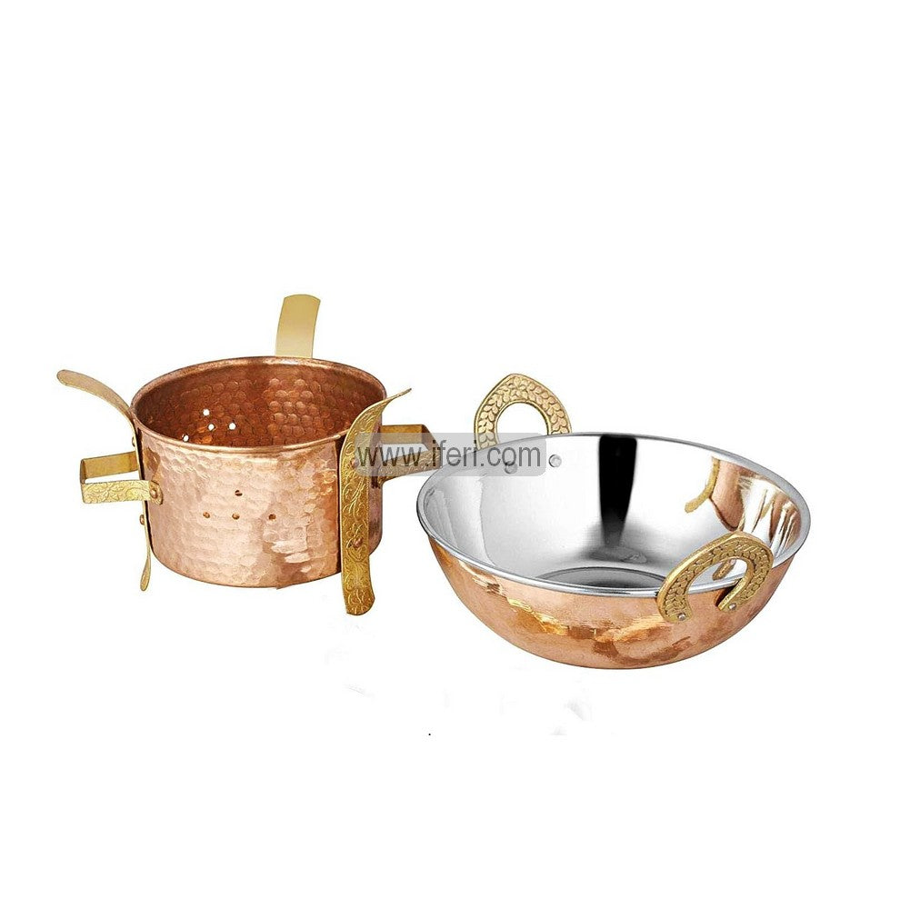 2 Pcs Pure Copper Stainless Steel Serving Bowl Karai and Copper Sigri / Warmer Set ALM9864