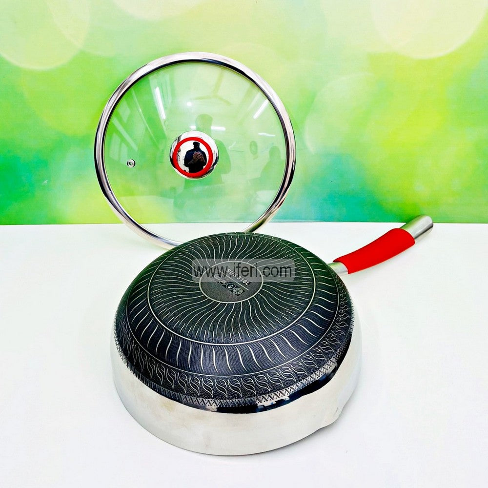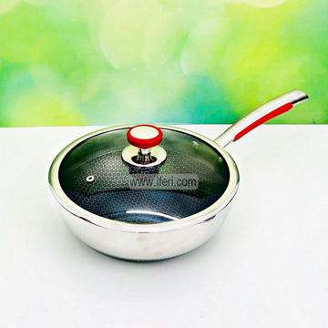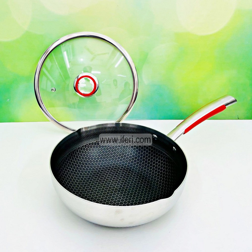 28cm Uncoated Honeycomb Design Stainless Steel Non-Stick Deep Fry Pan with Lid DL6851