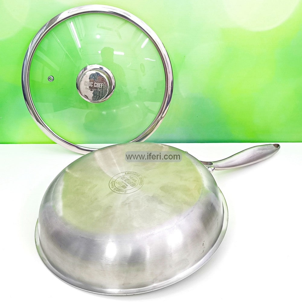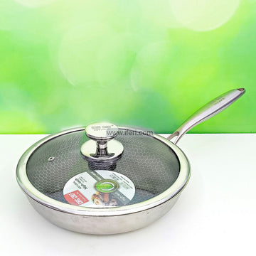 28cm Uncoated Honeycomb Design Stainless Steel Non-Stick Fry Pan with Lid SF0175