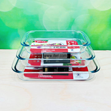 3 Pcs Tempered Glass Rectangular Shaped Casserole Set RH0991