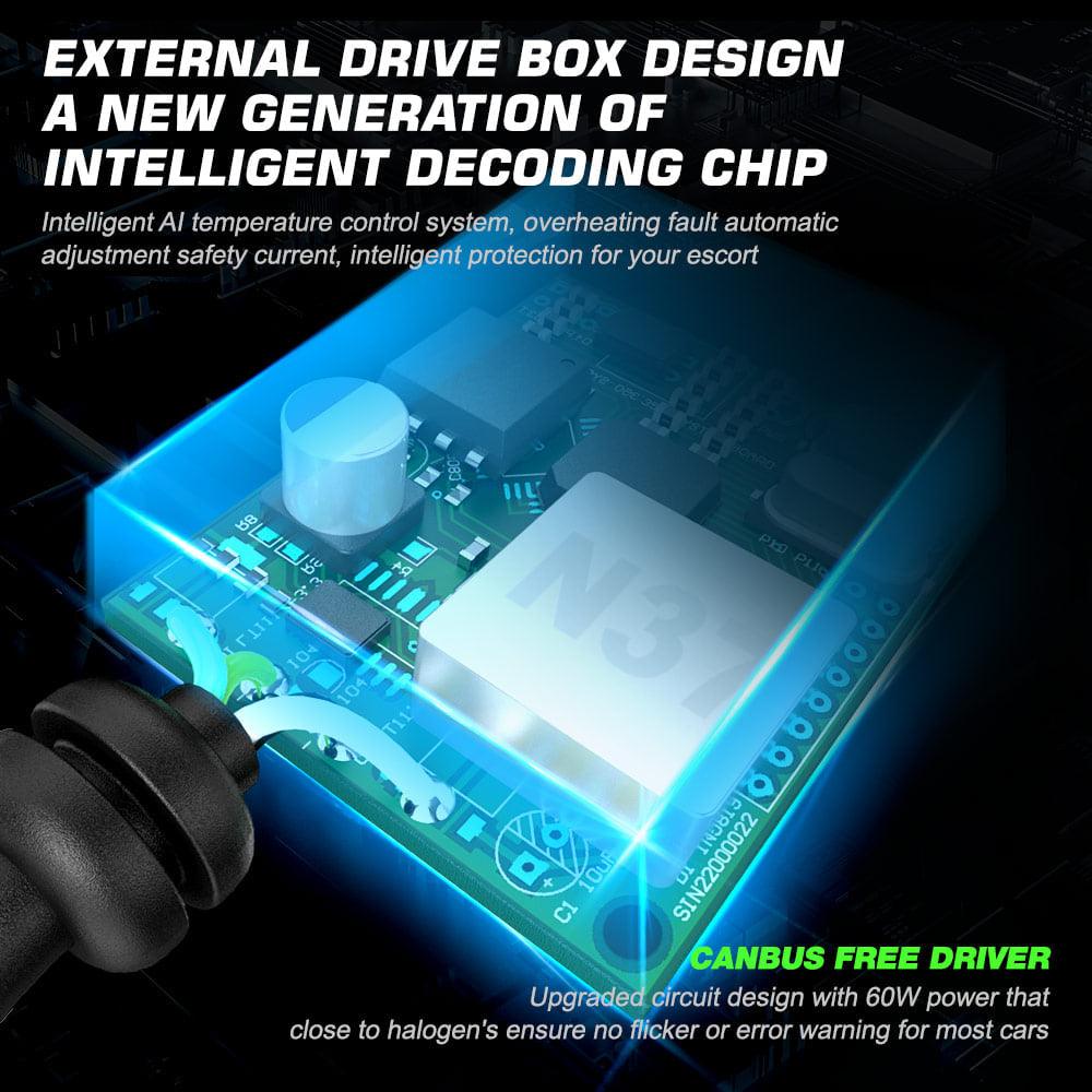- 120W/Pair(60W/Each Bulb)super high power, super high brightness, reaching 22000LM/Pair(11000W/Each Bulb);.