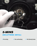 - Traditional H4 LED bulbs can't close or fit in lighting house due to the too-big or extra power cord, these new light bulbs don't have such problems at all, no tools needed and perfectly fit into your car without any modification, 5mins plug and play.